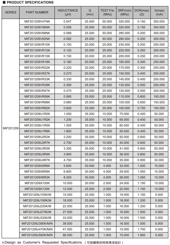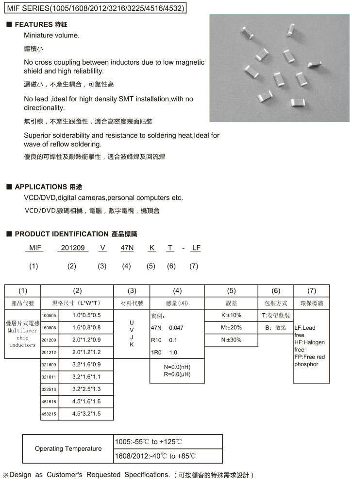 MIF Series 疊層片式電感
