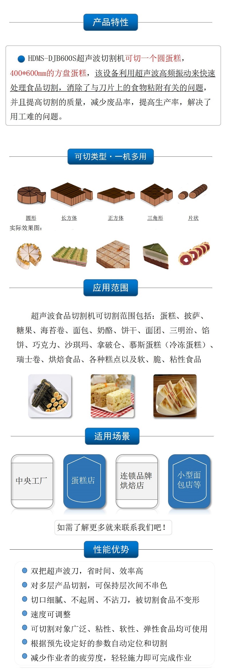 該設備配備單把超聲波刀片,可切圓形(只限一個圓蛋糕),也可切方形 |